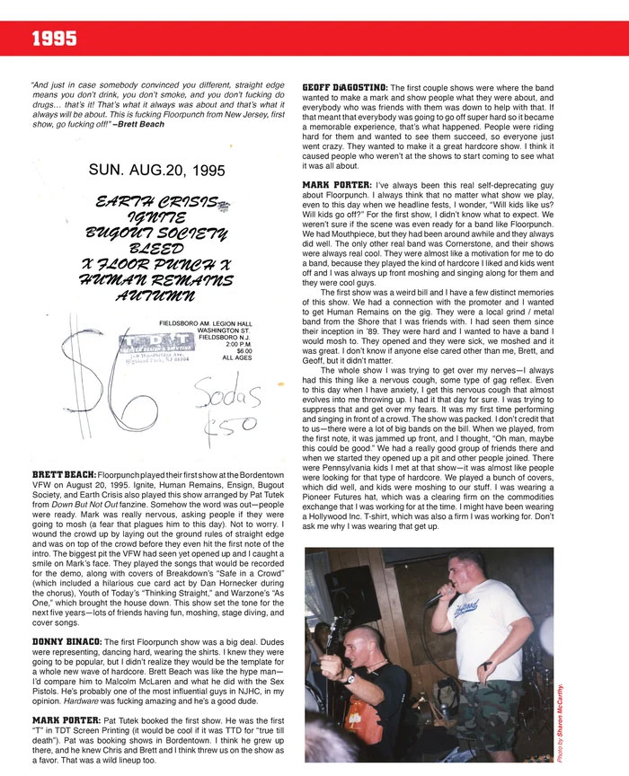 FLOORPUNCH全メンバーとIn My Blood Records、Equal Vision Records、Shark Attack、In My Eyes、Lifetime、Cabal 315 Straight Edge clothing、Youngblood Records、97a、Nails等といったレーベル、バンド等の当時のシーン内外の主要人物へのインタビュー、バンド結成からの活動の記録、ストーリーから写真、フライヤー、シャツ、グラフィック、ロゴ等をこれでもかといった感じで掲載、全編英語になりますが見るだけでも相当な情報量とゆうFLOORPUNCH好きは完全必携の極上本です!!!
