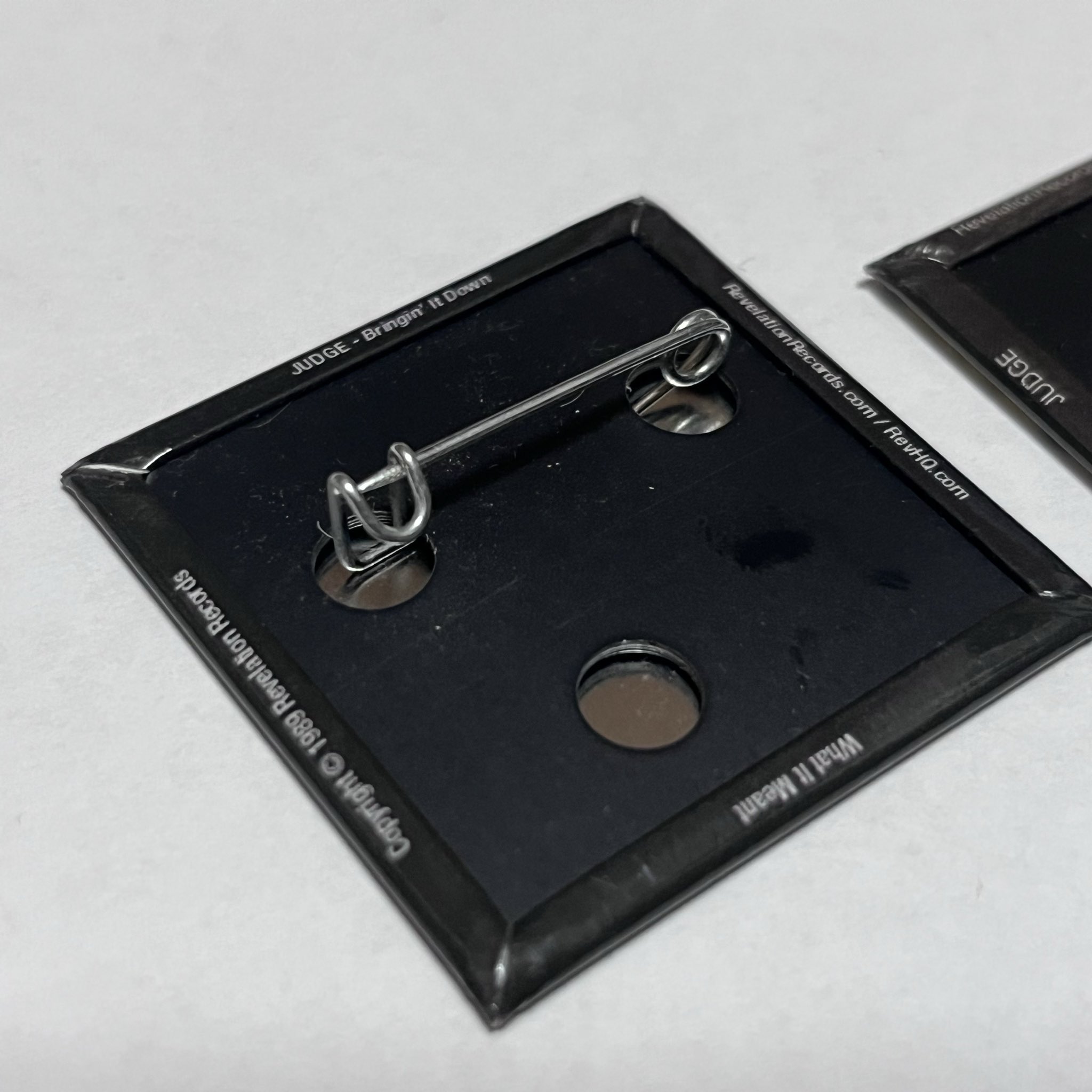 ■ 1.5" square button showcasing the record cover of Judge's "Bringin' It Down" LP.